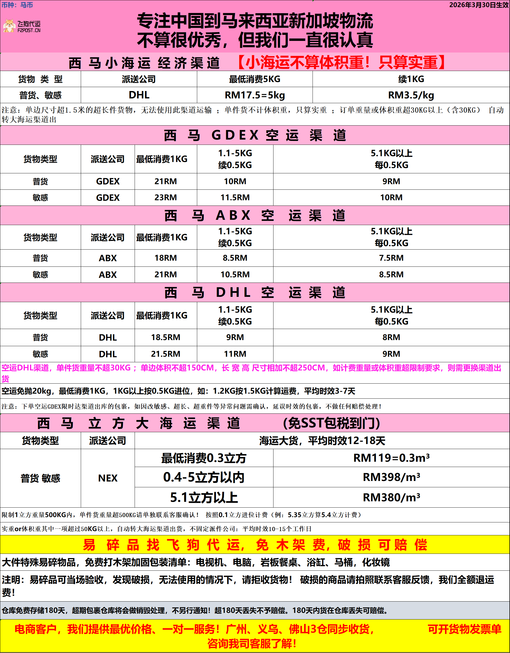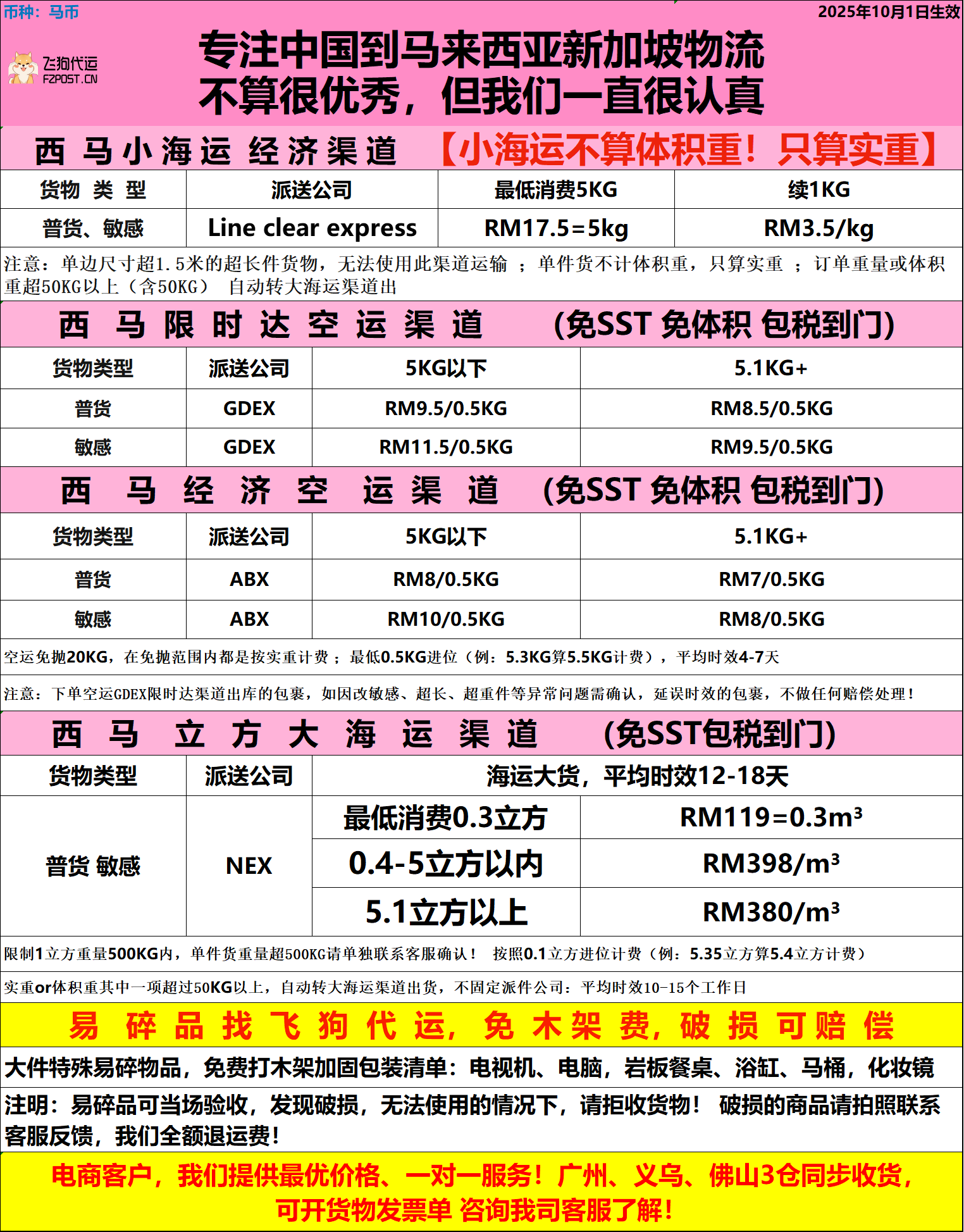 西马GDEX普货空运免sst免抛